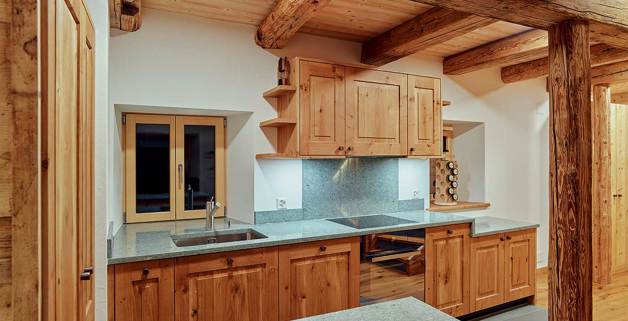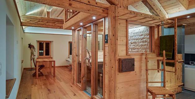 En été 2016, Ralph et Carmen Weber ont fait l’acquisition à Savognin d’une ancienne maison dotée d’une étable. Immédiatement, d’innombrables idées surgissent pour réaliser la maison de vacances de leurs rêves. Dans la pratique: en tant que propriétaires de l’entreprise «Die Bau Profis», ils ont pu prendre en charge eux-mêmes la rénovation, de la planification à l’exécution. C’est ainsi qu’est apparu un véritable bijou de construction où dominent le bois, l’ardoise et le verre. En outre, une grande importance a été accordée au bois massif en y intégrant au préalable, partout où cela était possible, de larges pans de vieux bois restauré.