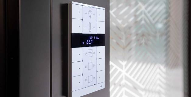Une chose est claire: les personnes qui louent ici un espace de travail – que ce soit pour quelques heures ou plusieurs mois – ne veulent pas s’embarrasser de détails techniques. Le système domotique du bâtiment, par sa simplicité, répond pleinement à cette attente. Les bureaux sont équipés d’un panneau de commande comportant dix touches multifonctions KNX permettant d’actionner les différentes fonctionnalités. Les touches sont munies de pictogrammes internationalement reconnus que l’on utilise intuitivement – et sans barrière de langue – pour la ventilation, la température, l’éclairage et les stores. Tous les capteurs et interrupteurs nécessaires sont réunis en un seul appareil. Cela donne visuellement une impression d’ordre, offre une fonctionnalité accrue et réduit les frais d'installation.
