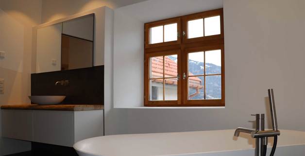Pour respecter l’histoire d’une bâtisse, des concessions sur le confort ne sont pas forcément nécessaires. Au contraire: le système domotique basé sur digitalSTROM a été mis en place de manière ciblée par l’installateur-électricien en vue de commander tous les appareils électriques dans la cuisine et la buanderie par interrupteur ou via une application pour smartphone. De plus: chauffage, ventilation, alarme, audio et vidéo, éclairage, obscurcissement, porte du garage, et même la fontaine dans le jardin et l’irrigation sont connectés à ce système qui permet de commander aisément tous ces dispositifs. L’éclairage dans et autour de la maison est équipé de lampes LED à luminosité variable et basse consommation. Leur ton chaud crée une lumière douce, et donc une atmosphère agréable. La connectivité permet par exemple de programmer des scénarios de lumière et de les déclencher en un clic – selon les besoins et même accompagnés de la musique adéquate.